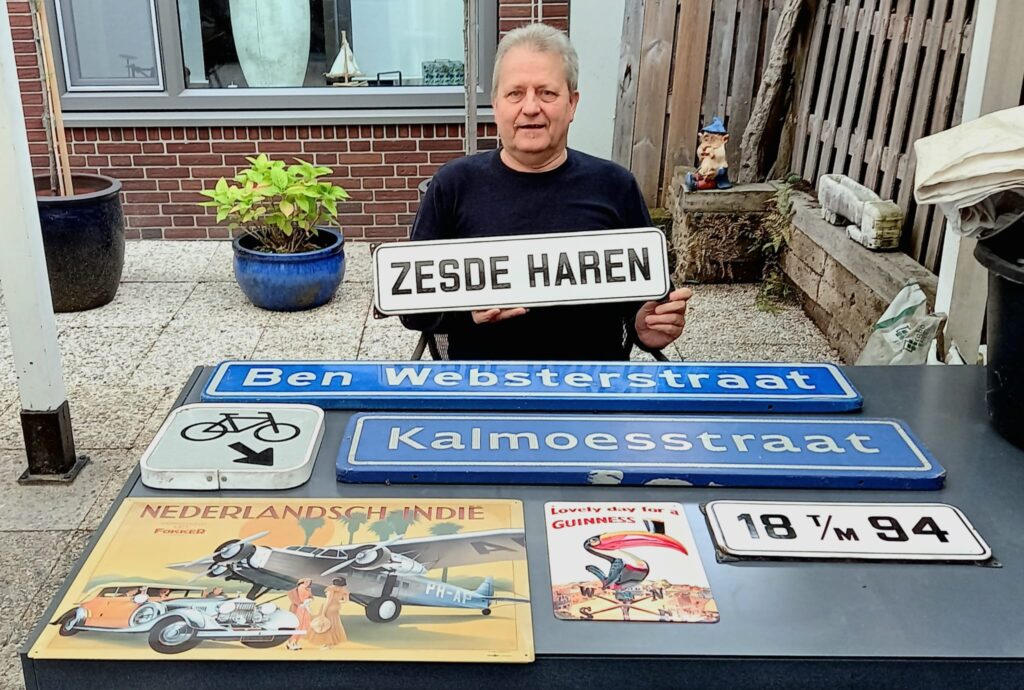 Johan is met pensioen. Hij werkte in de bouw en als vrachtwagenchauffeur. In die tijd begon hij met het verzamelen van emaille borden. Nu heeft hij er ongeveer 100. “Ik verzamel borden van auto’s en fietsen, en bijzondere borden.” Een speciaal bord is het straatnaambord van De Zesde Haren. Johan vroeg of hij het bord mocht hebben. Dat mocht, op één voorwaarde: hij moest het bord zelf losmaken.